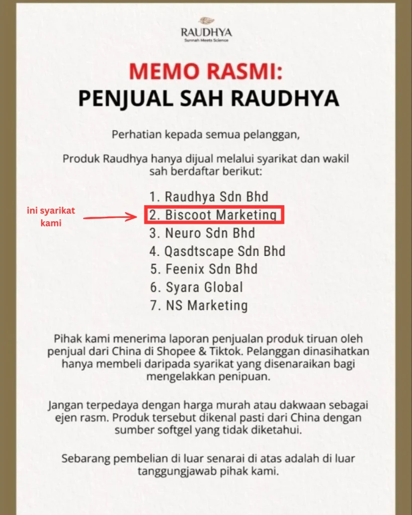 HATI-HATI DENGAN PRODUK FAKE, BELI DARI SYARIKAT INI SAHAJA UNTUK DAPATKAN RAUDHYA ORIGINAL